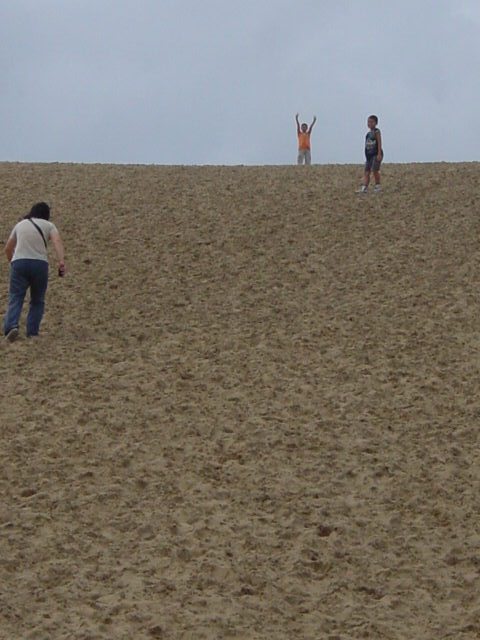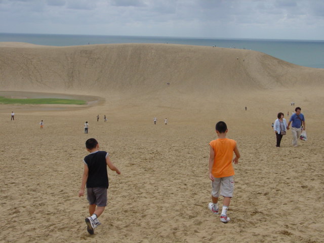 そんな必死で歩いてるのに、息子らは、ヒマをもてあまし、座り込んで砂遊び。オイオイ・・・