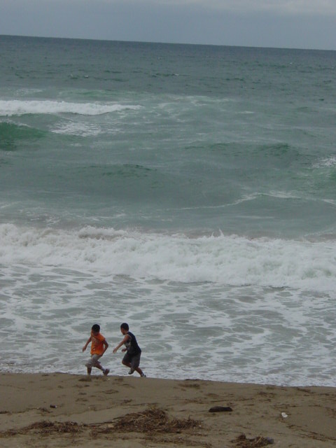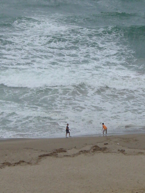 おいおい、息子達、あんまり波に近づくんじゃねぇよ~!